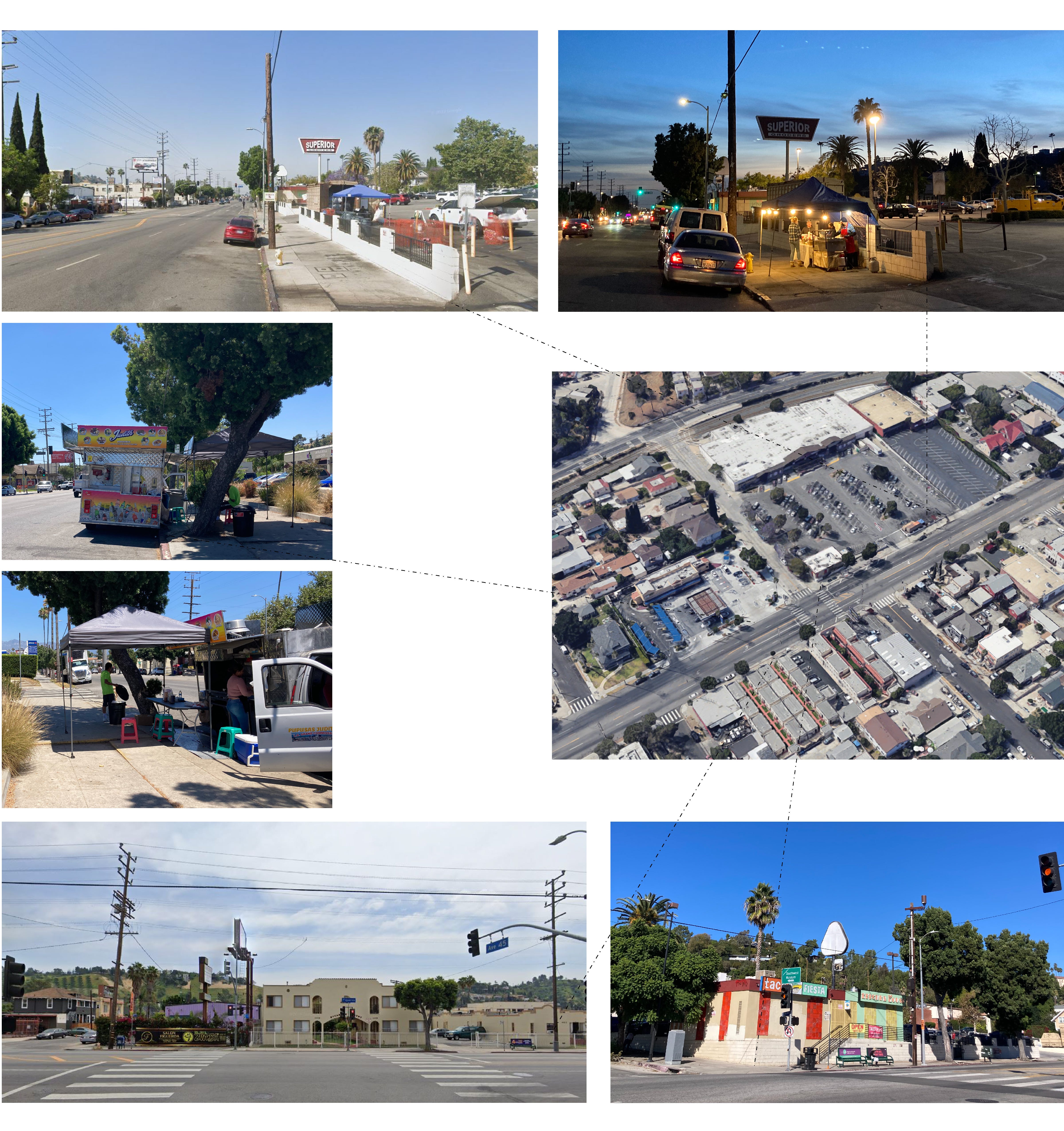Informal economies crop up weekly in Lincoln Heights in the form of swap meets and sidewalk markets next to the train tracks, mariachi bands occupy the public sidewalk, a big communal dinner on a plastic folding table in front of the party favor and flower store on Cypress Ave —lit up at night by string lights over a group of community elders sharing tea and comida— crops up occasionally, across the street from the stretch of sidewalk cordoned off by cones —small, declarative orange sentinels— demarcating the food distro that serves folks in the local neighborhood every wednesday mid-morning.