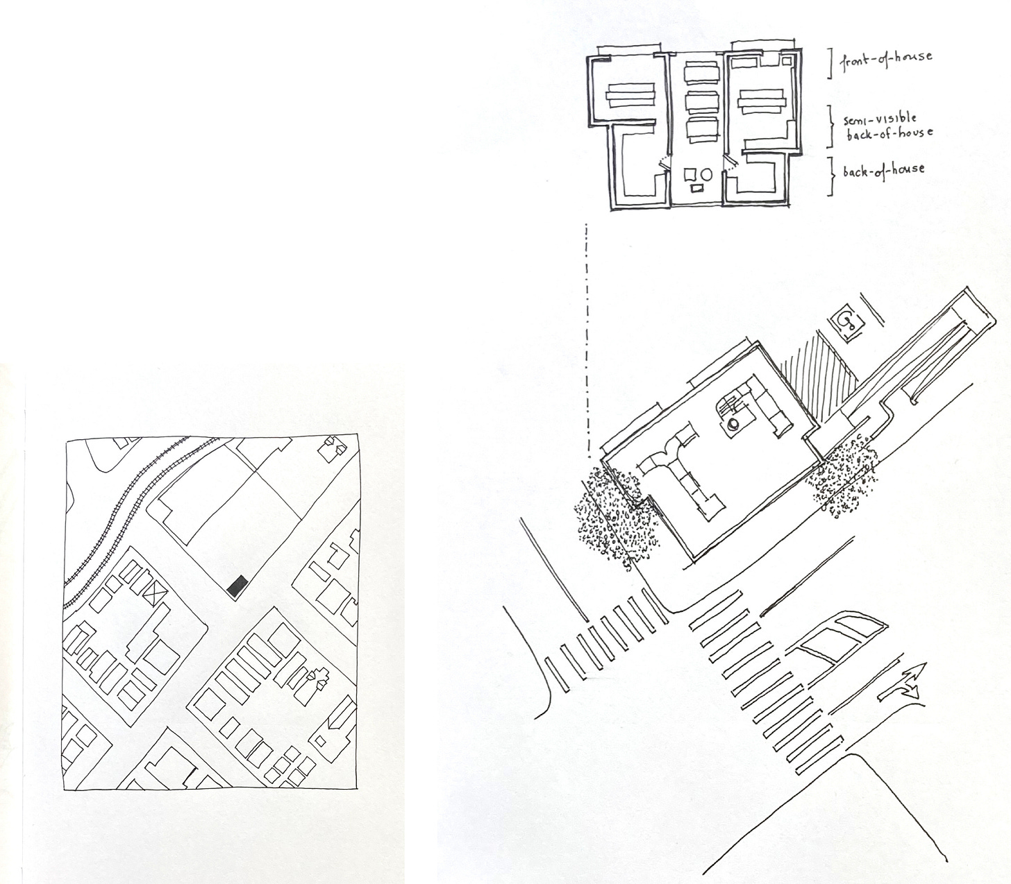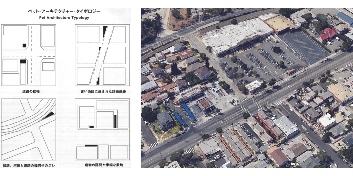 The spatial situation of the kiosk building comprises a typological instance of ‘pet architecture,’ according to the late 90s definition developed by Tokyo architecture firm Atelier Bow-Wow in their 2001 Pet Architecture Guide Book.1 Momoyo Kaijima and Yoshiharu Tsukamoto’s work as “anthropological interrogators of the city” defines pet architecture as “nuanced micro architectures,” or “very small buildings in the city.”2 A characteristic indicator of pet architecture is the use of fragmented, overlooked, leftover, or residual sites. These are often partial lots, sites that are in some way compromised, compressed, limited, or otherwise impacted by adjacent buildings, transit systems, or public infrastructures in their immediate proximity.
