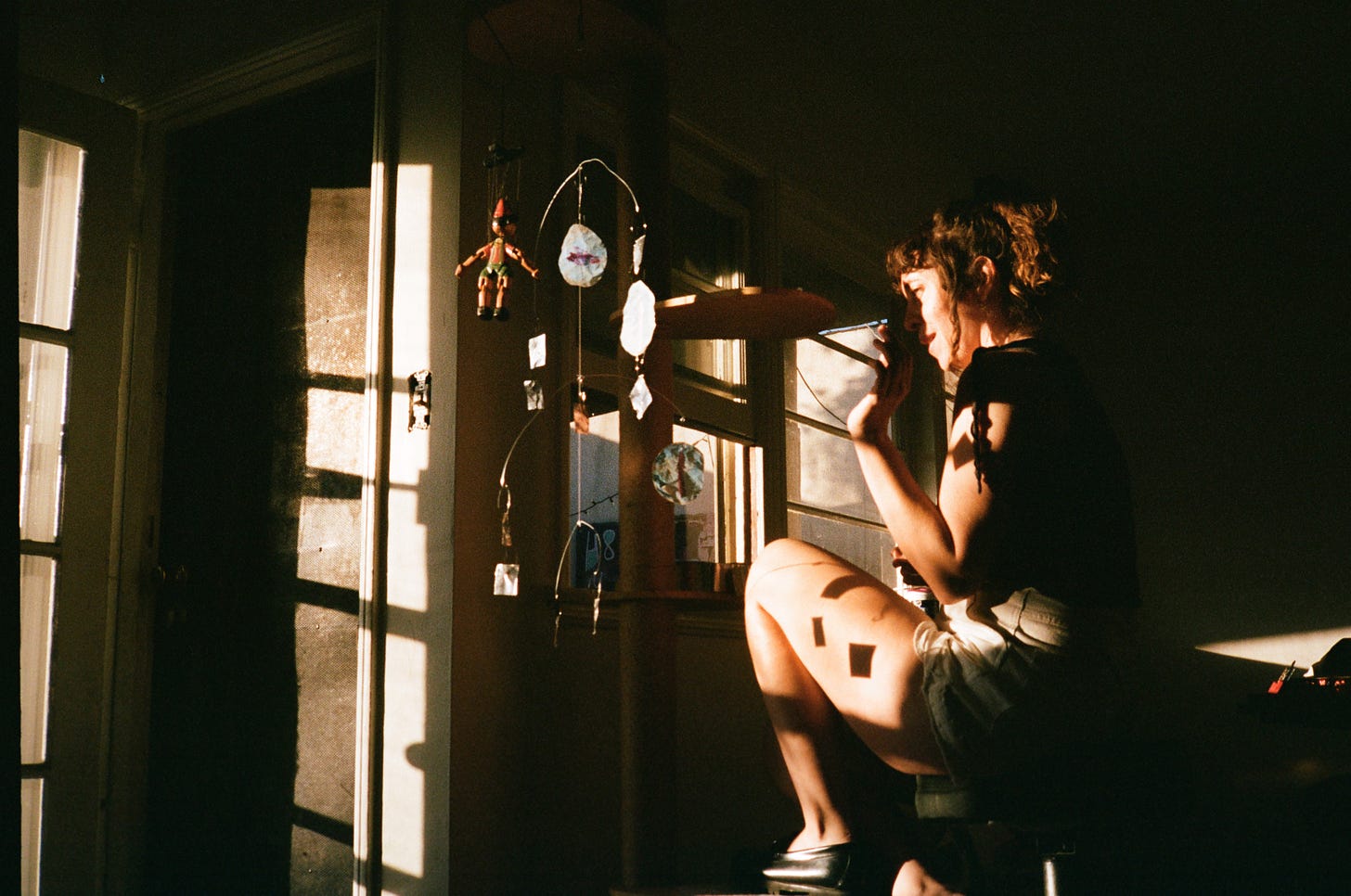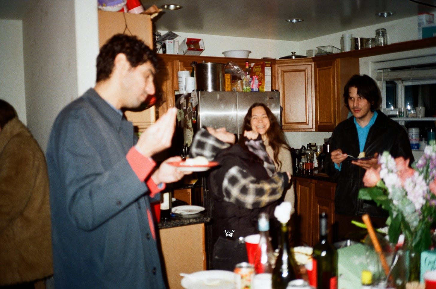 BX making aluminum foil tape mobiles for the nye rager we throw in the backhouse