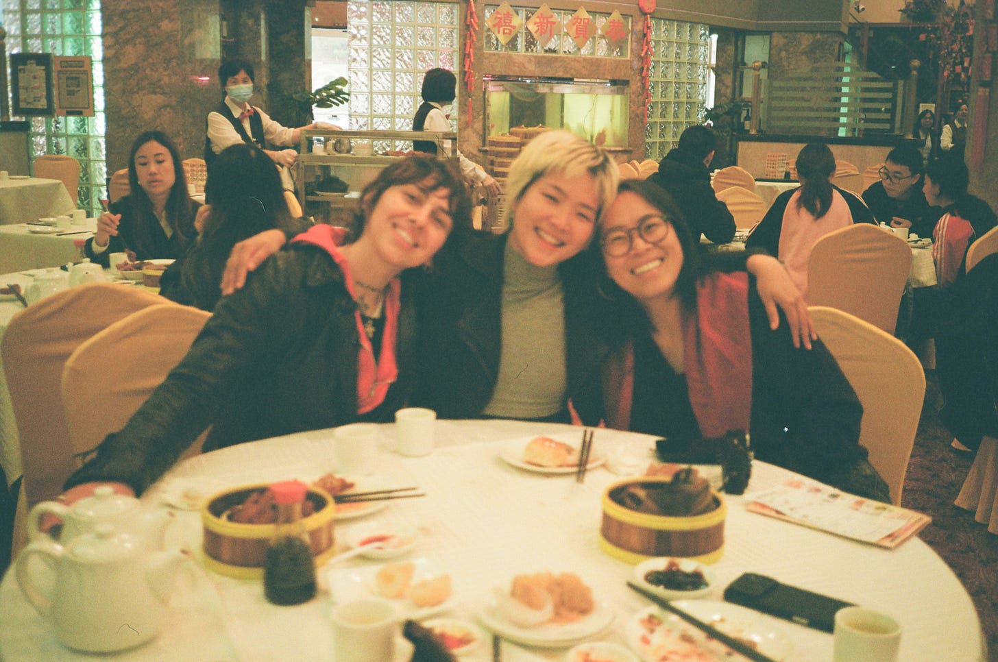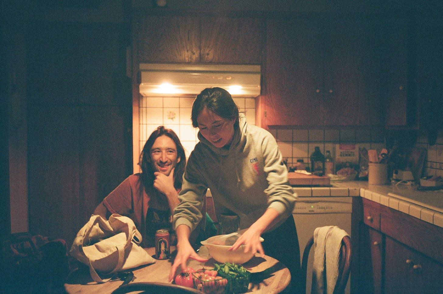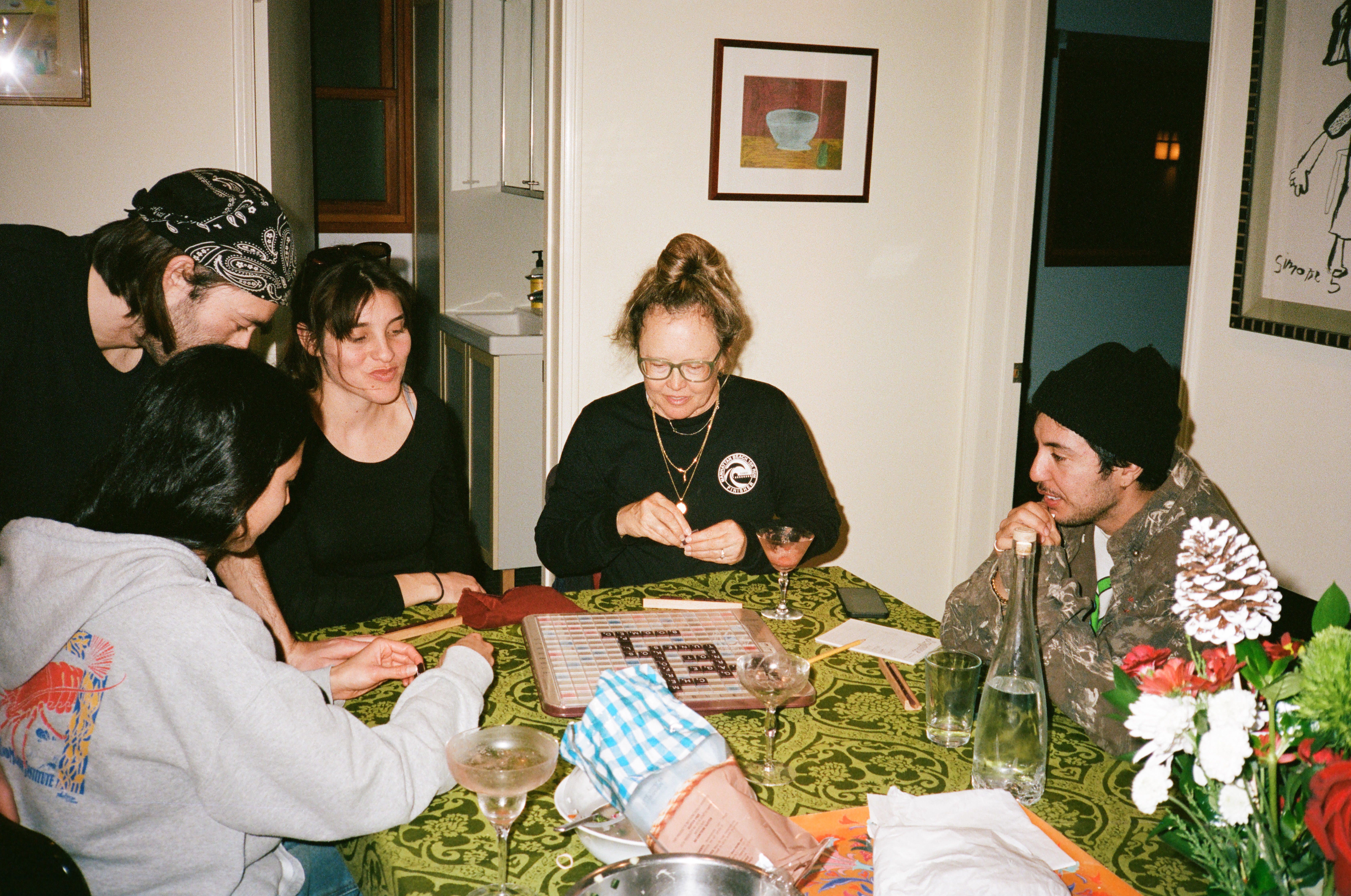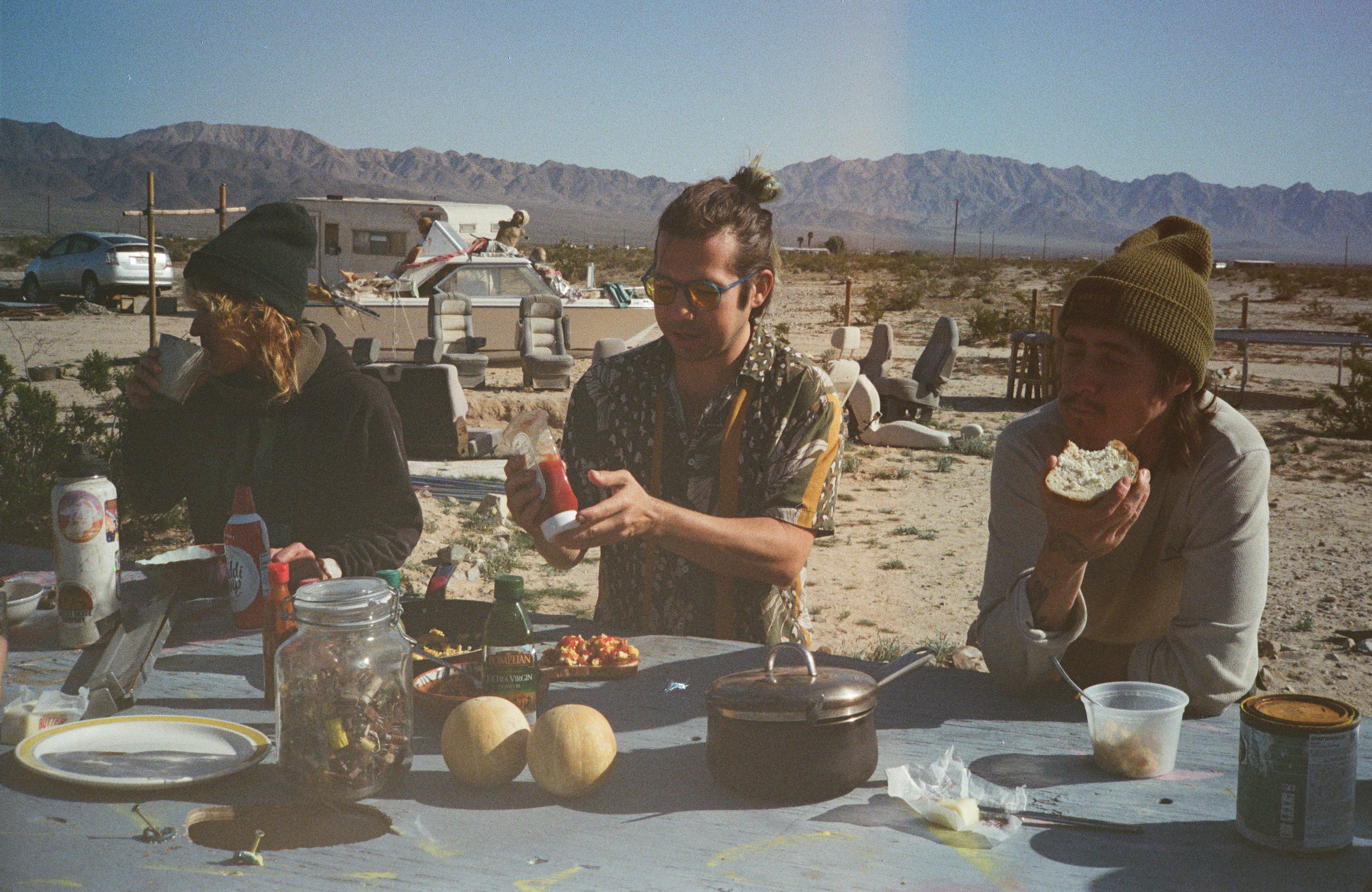 communal breakfasting, LD, EL, JO in wonder valley, late january