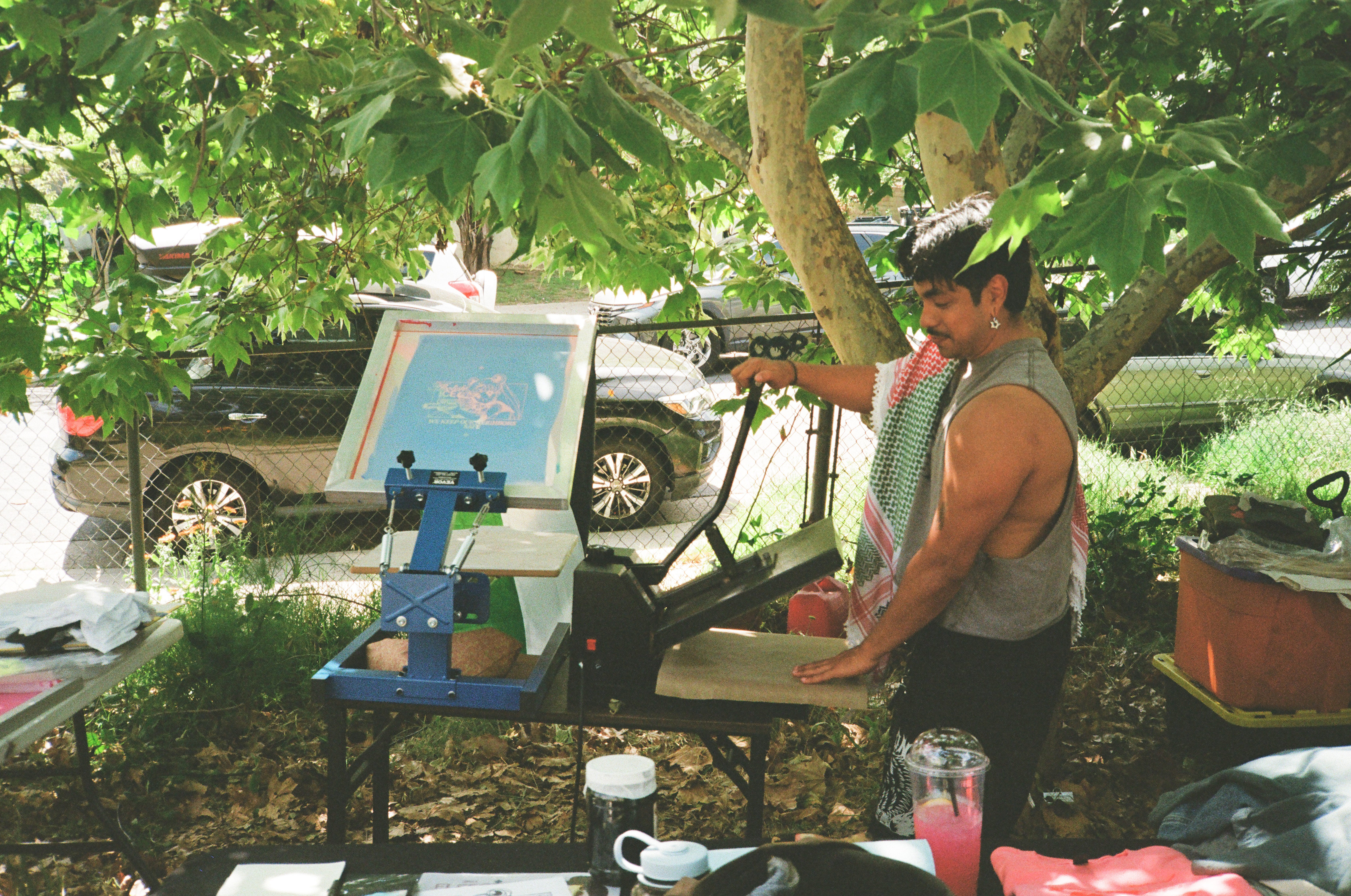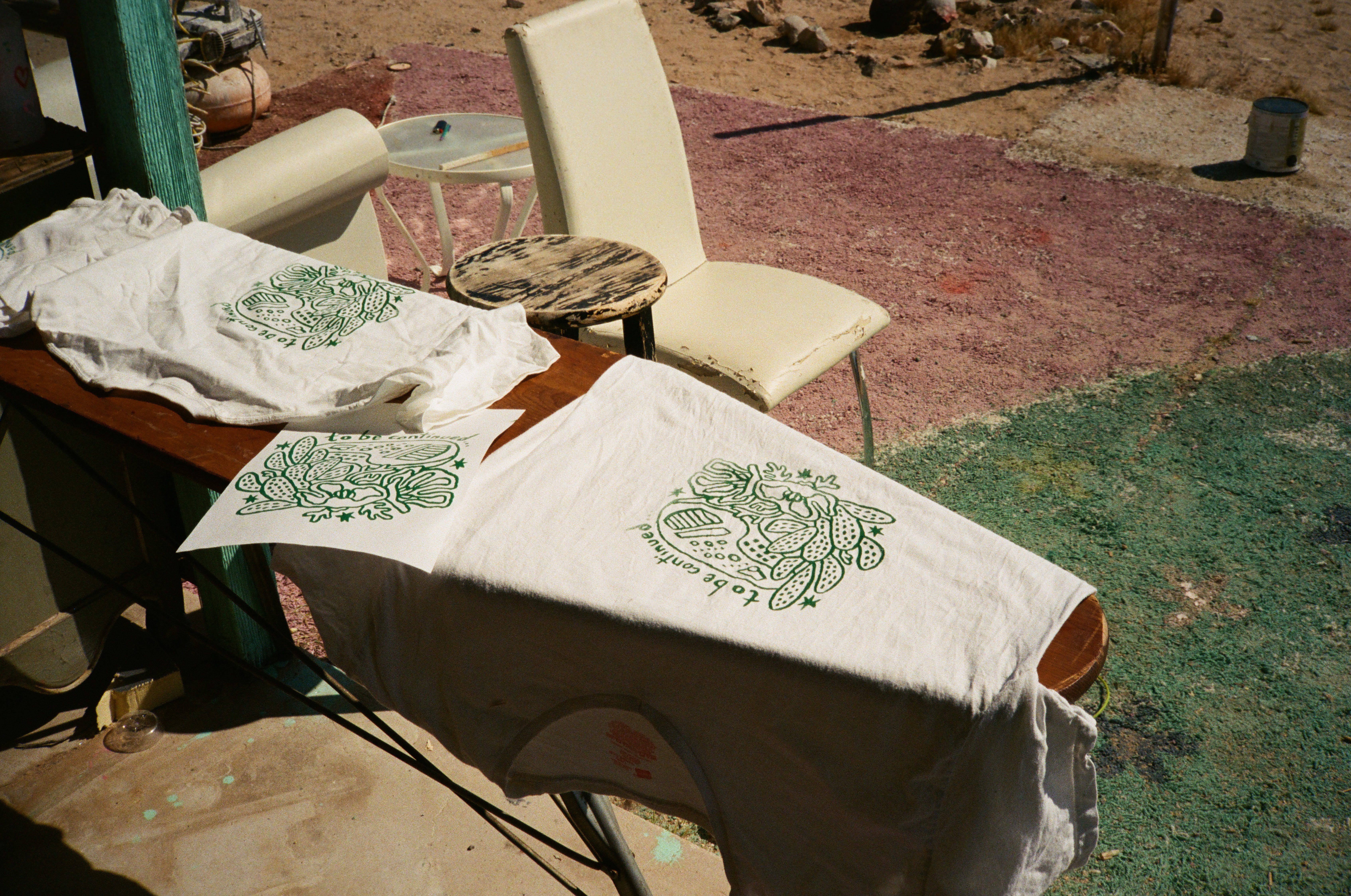 festival merch! screen printing, drawing, making trash art with LD and ED