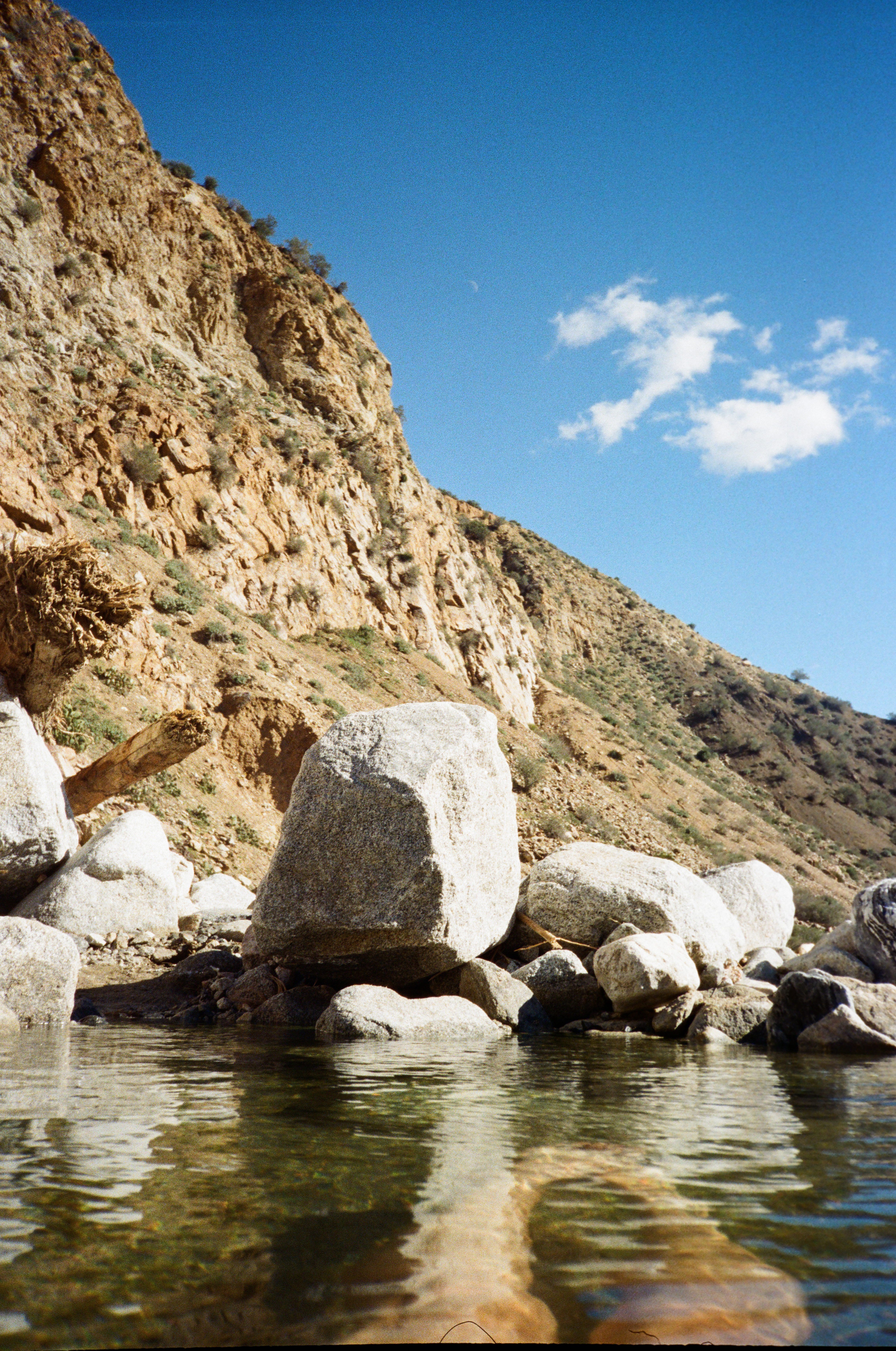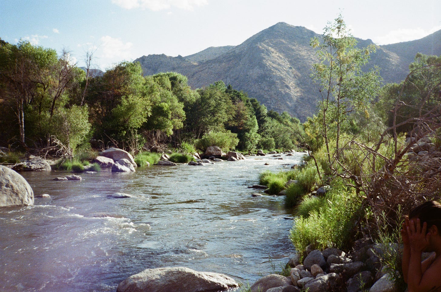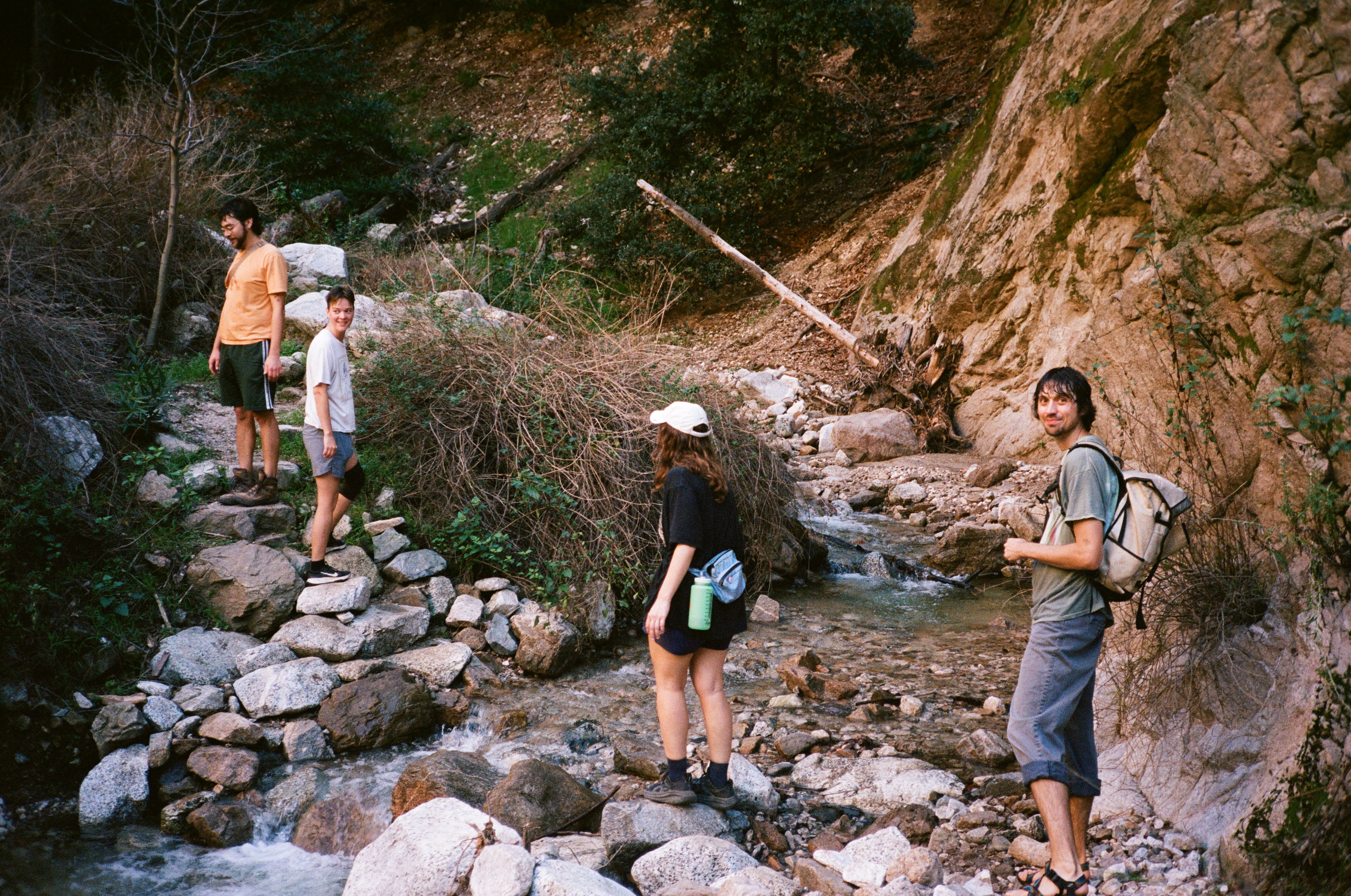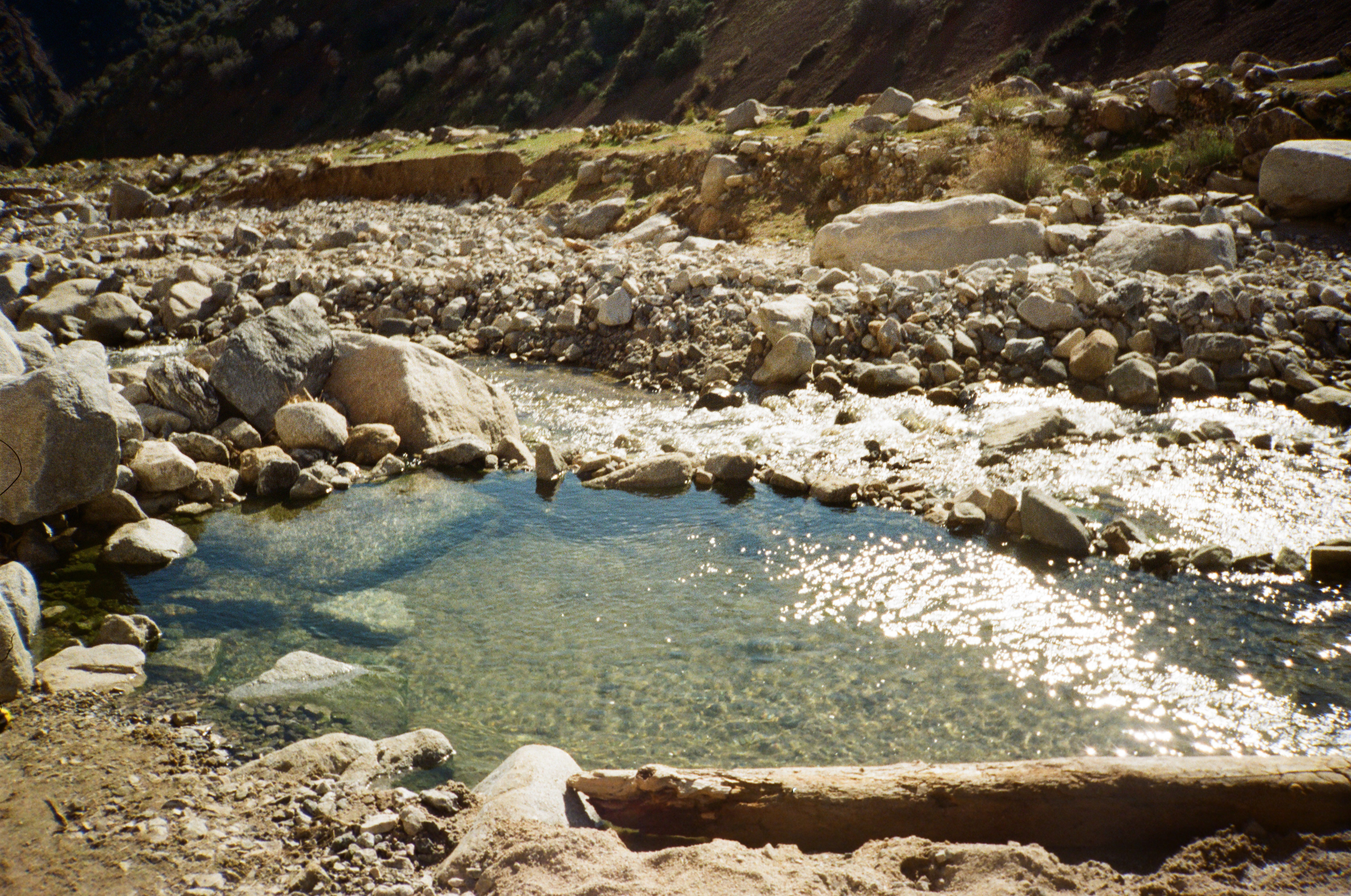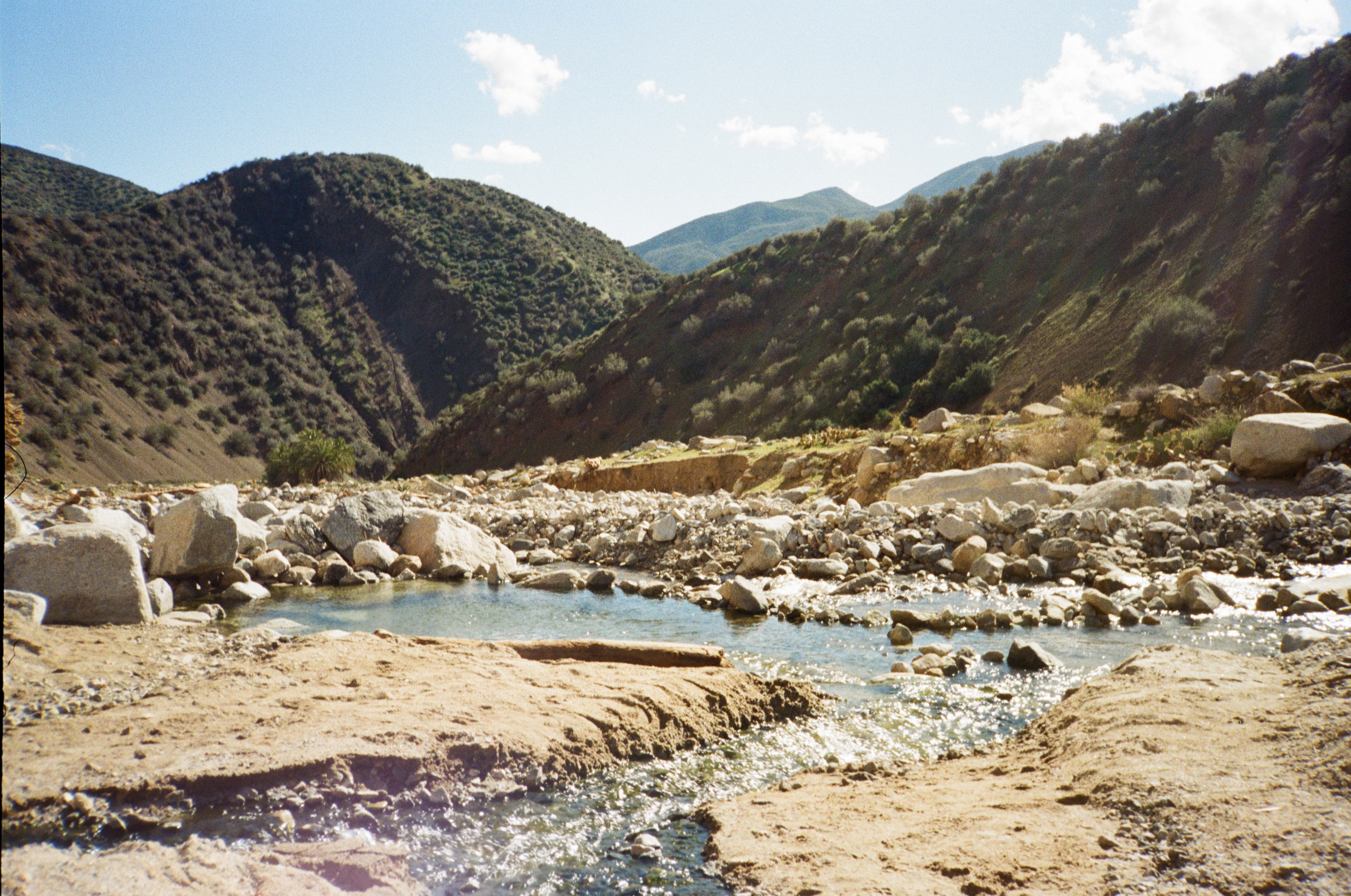 sespe wilderness with BN and EL, end of january—full sicko mode—4 am, 16 mi hike in, tens of river crossings, several waist-deep and through rapids, moving at a quick clip every time we go uphill, along a ridgeline, mountain vantages down to the meadows and river rocks—solidifying psychogeologic memories, trusting the precipice, debating generative friction in fragmented art practice, speculating on effective organizing tactics—and arriving at the hot springs—regarding calamity as creative invitation, becoming geothermal engineers, soaking in the hot tub, plunging in the cold spring, star-studded skies and scalding heat in the rocky pools, sprawling cactus and the enormous herd of bighorn sheep our only neighbors