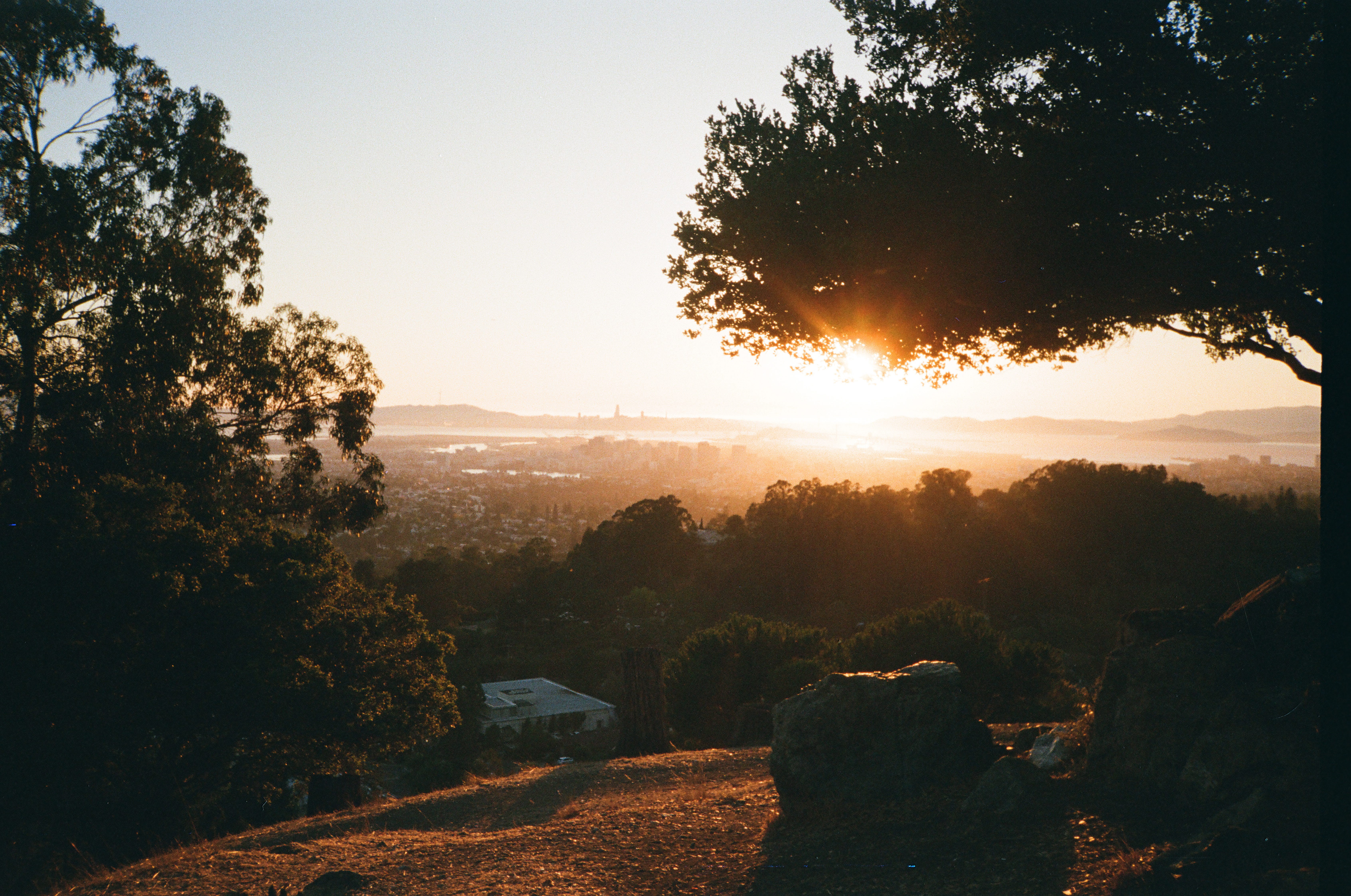 lake merritt, sausal creek, redwood regional park, and joaquin miller treetop sundown over the bay area with JB, VC, and MT in september
