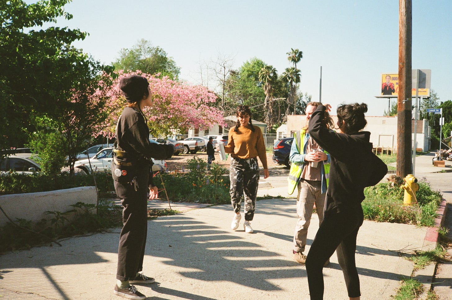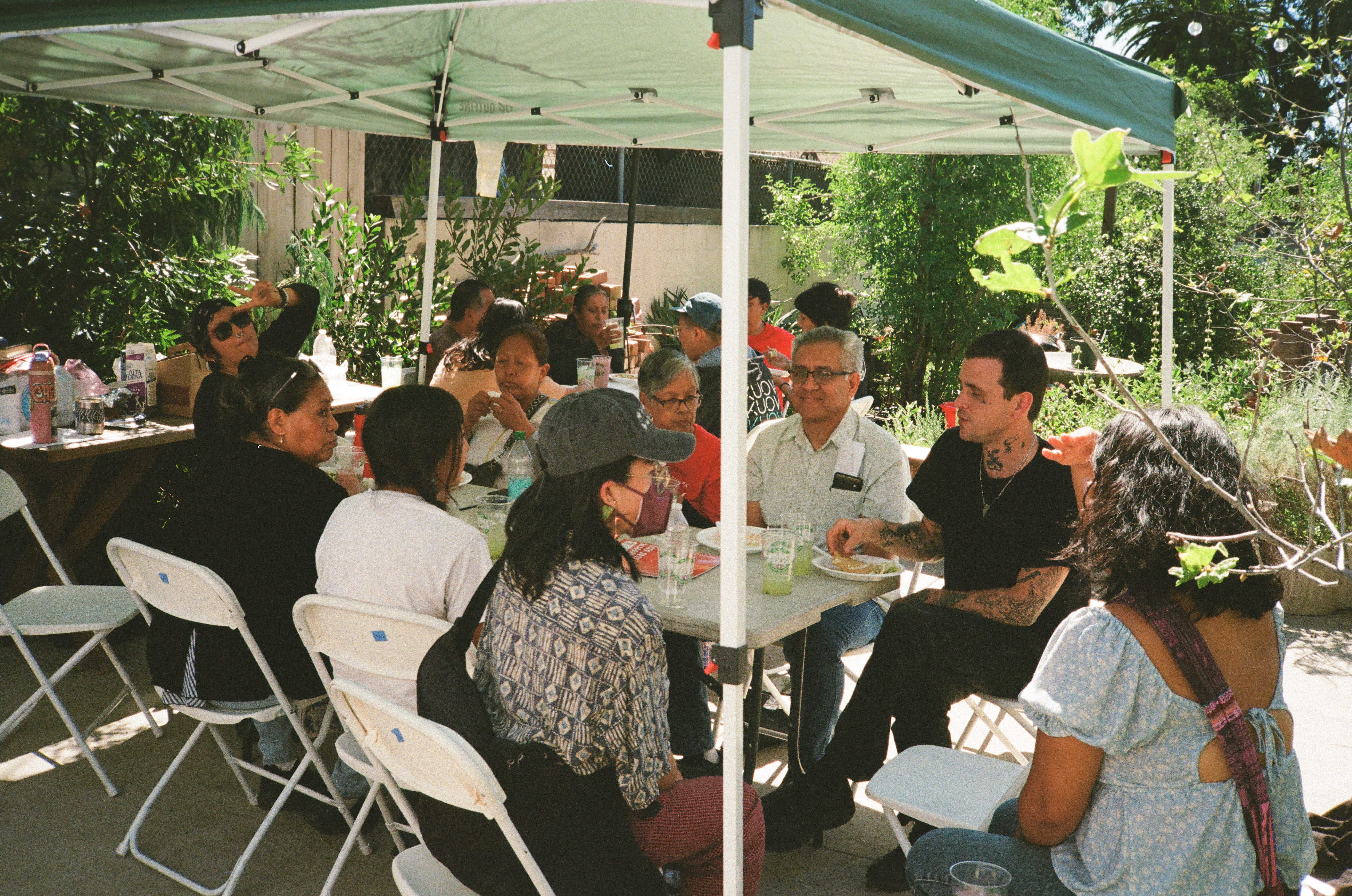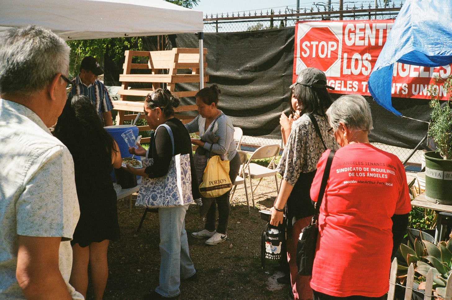 There’s always good conversation at the El Sereno Green Grocer x AIDS Health Foundation weekly food distro, providing primarily for elders in the neighborhood at the community garden. There’s always a familiar face or an unexpected connection, from years organizing and collaborating in resistance to police violence and brutality, in protest of the genocide in Palestine, toward relief efforts in the wake of the LA fires, in response to the ICE raids, from the cross-pollination of tenant organizing spaces, since Mike Davis bookclub meetings in the park and at the local bar in summer ’22, and the group night bike rides that fall and winter.