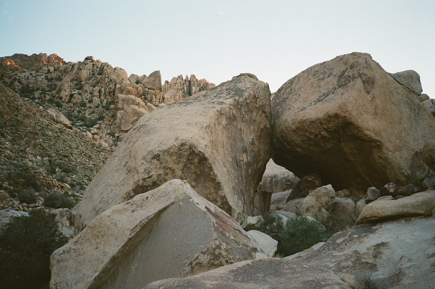 making questionable bouldering choices in indian cove, january joshua tree with J